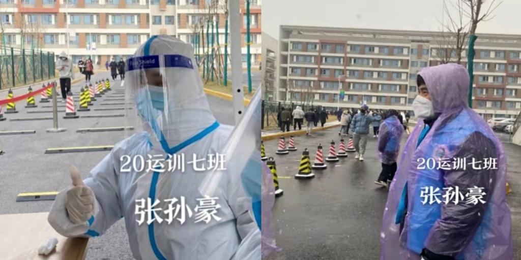 运动训练学院2020级7班谢冬同学,负责拍摄核酸检测时医护人员和志愿者的防疫工作、校领导视察动态、物资的运送和搬运等校区日常情况。