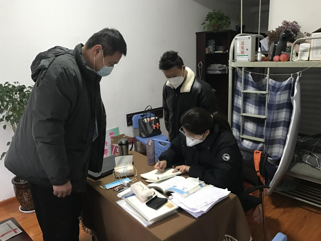 照片十八:21级辅导员王涛、李森森深入学生宿舍,实验班辅导员陈德鹏问询学生情况