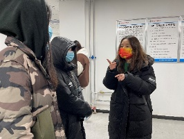照片二十四:排球教研室教授赵文娟维持核酸检测秩序