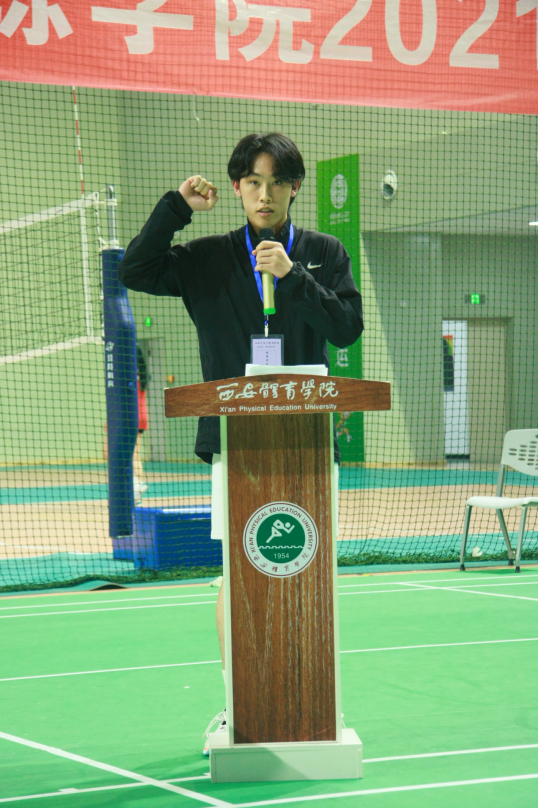 大会第三项:裁判员运动训练学院2021级3班苏嘉亮带领全体裁判员宣誓