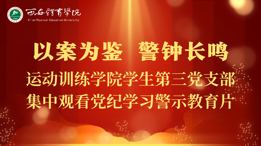 为深入学习贯彻习近平总书记关于党纪学习教育重要讲话和重要指示精神,推动党纪学习教育走深走实,运动训练学院学生第三党支部于6月13日中午在鄠邑校区一站式学生社区会议室组织开展“ 以案为鉴,警钟长鸣 ”党纪学习警示教育片观影活动。会议由辅导员李丹主持,全体预备党员参加了本次会议。