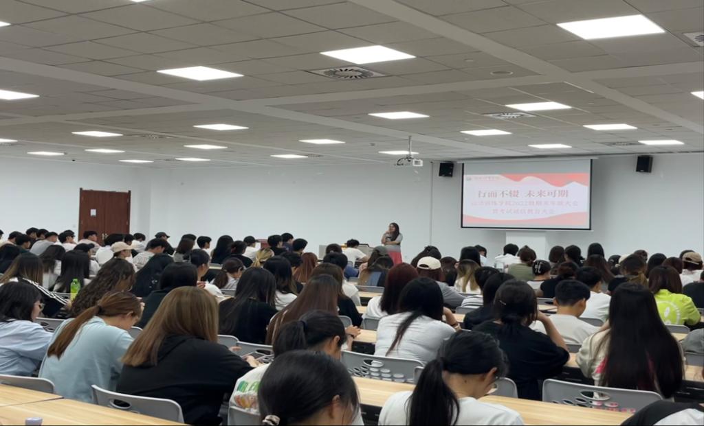 为进一步加强学风考风建设,以考风正学风、以学风促考风,教育引导学生学纪、知纪、明纪、守纪,把遵规守纪刻印在心,内化为言行准则,营造诚信考试的良好氛围。6月23日晚,运动训练学院学院2022级于鄠邑校区综合馆106教室召开“行而不辍,未来可期”期末年级大会暨诚信考试教育大会。2022级全体同学分批次参加了本次会议。会议由辅导员李丹主持。
