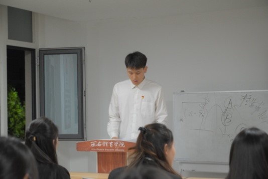 房鑫同学领学“习近平总书记接见第33届奥运会中国体育代表团重要讲话精神”。习近平强调,中国体育代表团坚持拿道德的金牌、风格的金牌、干净的金牌,弘扬了体育道德风尚,赢得了广泛尊重认可,充分展现了新时代中国形象。赛场上,大家遵守规则、尊重对手、尊重裁判、尊重观众,保持良好的赛风赛纪和文明礼仪,胜不骄、败不馁,在竞技上、道德上、风格上都拿到了金牌。通过代表领学鼓励同学们要牢记总书记的嘱托,以更加饱满的热情和更加坚定的信念投入到体育事业中去,为实现体育强国目标贡献自己的力量。