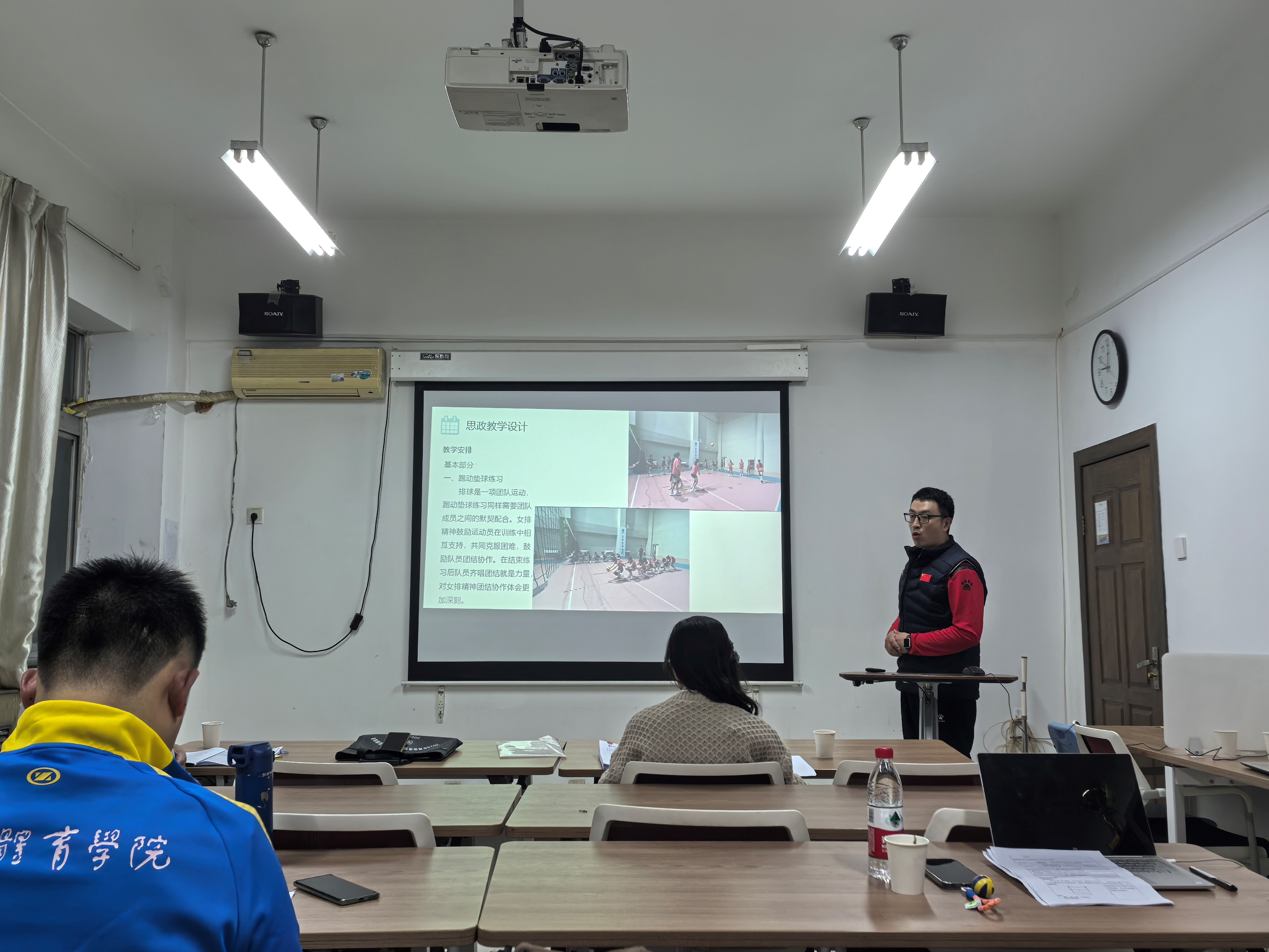 本次思政教学“大练兵”活动经过各教研室教师踊跃报名和教研室推荐,共有来自篮球、排球、乒羽和重竞技四个教研室的5位教师参赛。