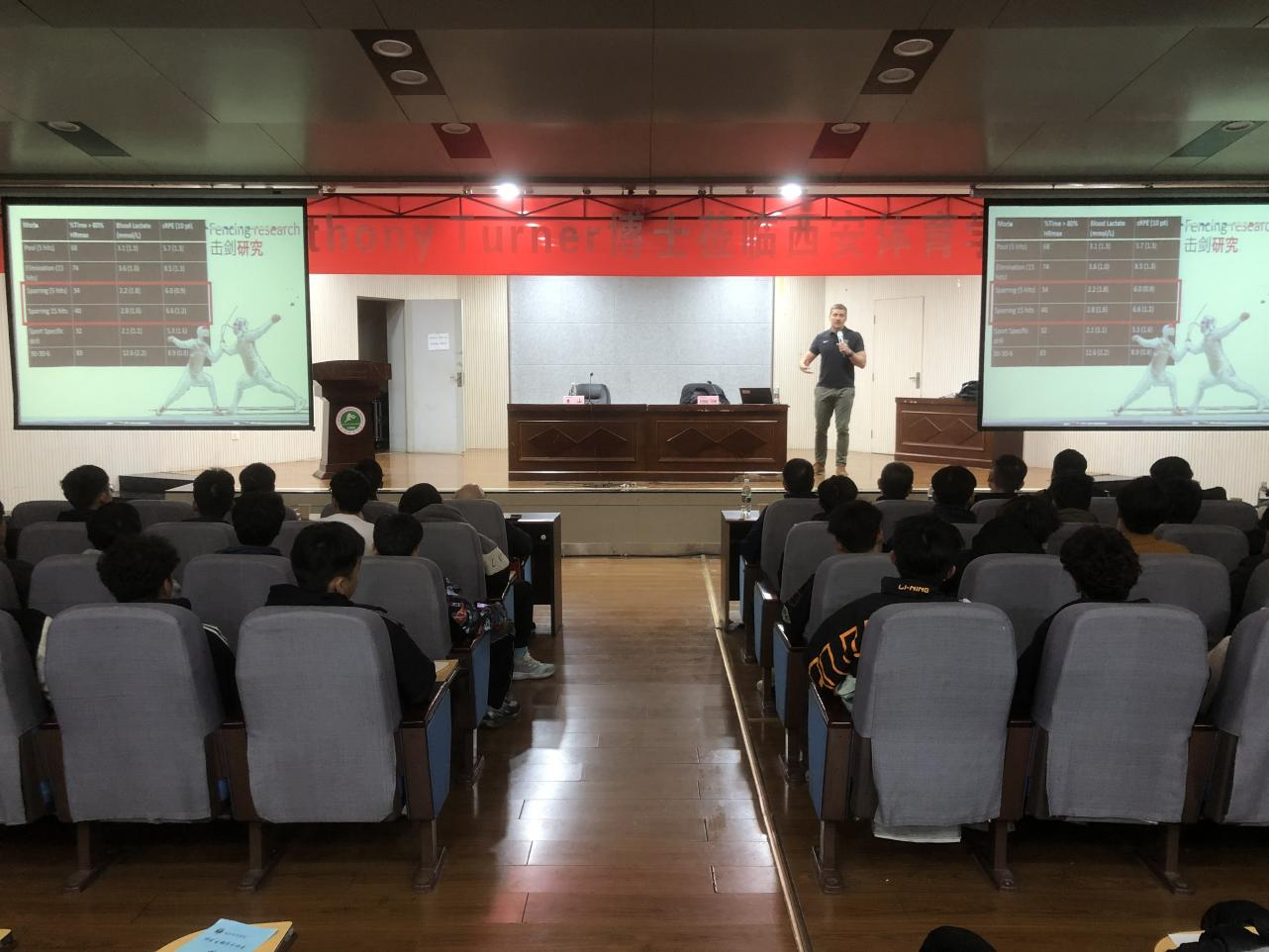 为深入推动《西安体育学院“2023学科建设年”实施方案》落地,打造“雁塔论坛”特色学术活动品牌,营造良好的学术氛围,凝心聚力促发展。11月29日下午14:30,我院邀请了Anthony Turner博士在教学楼一楼报告厅为我校师生作了题目为专项运动表现诊断的学术报告。本次学术讲座由运动训练学院、运动与健康科学学院、研究生部、国际交流中心、体能训练中心及陕西省高校青年创新团队共同举办。报告由李山教授主持。