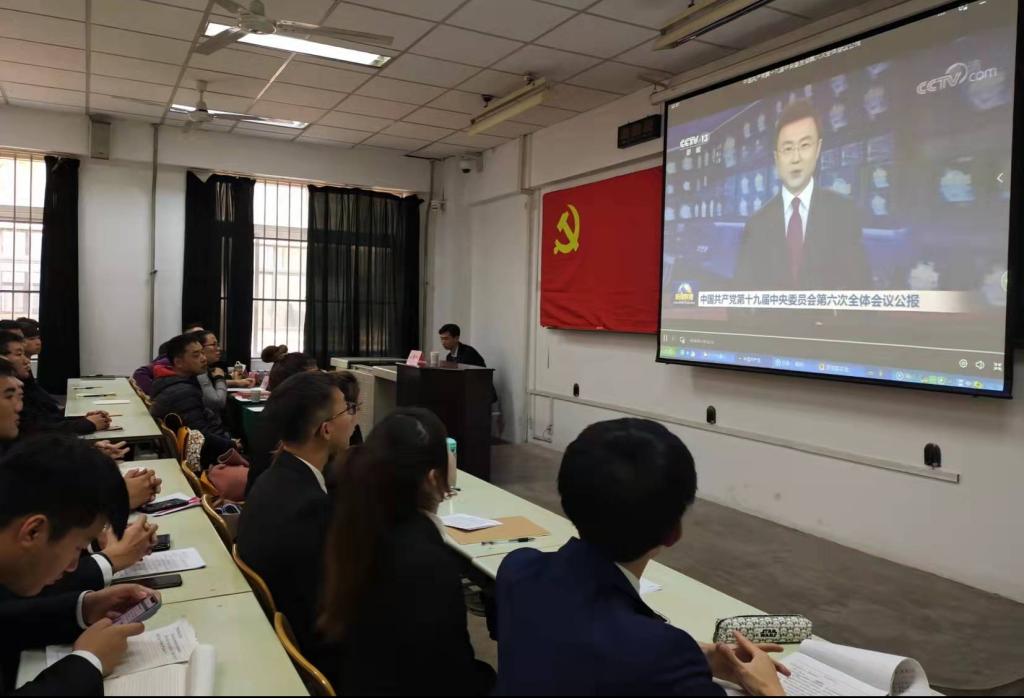 全体党员教师以及学生第二党支部的党员、预备党员和入党积极分子一同观看学习了十九届六中全会重要指示精神纪录片,观看结束后,全体人员进行了重温入党誓词的庄严的宣誓活动。