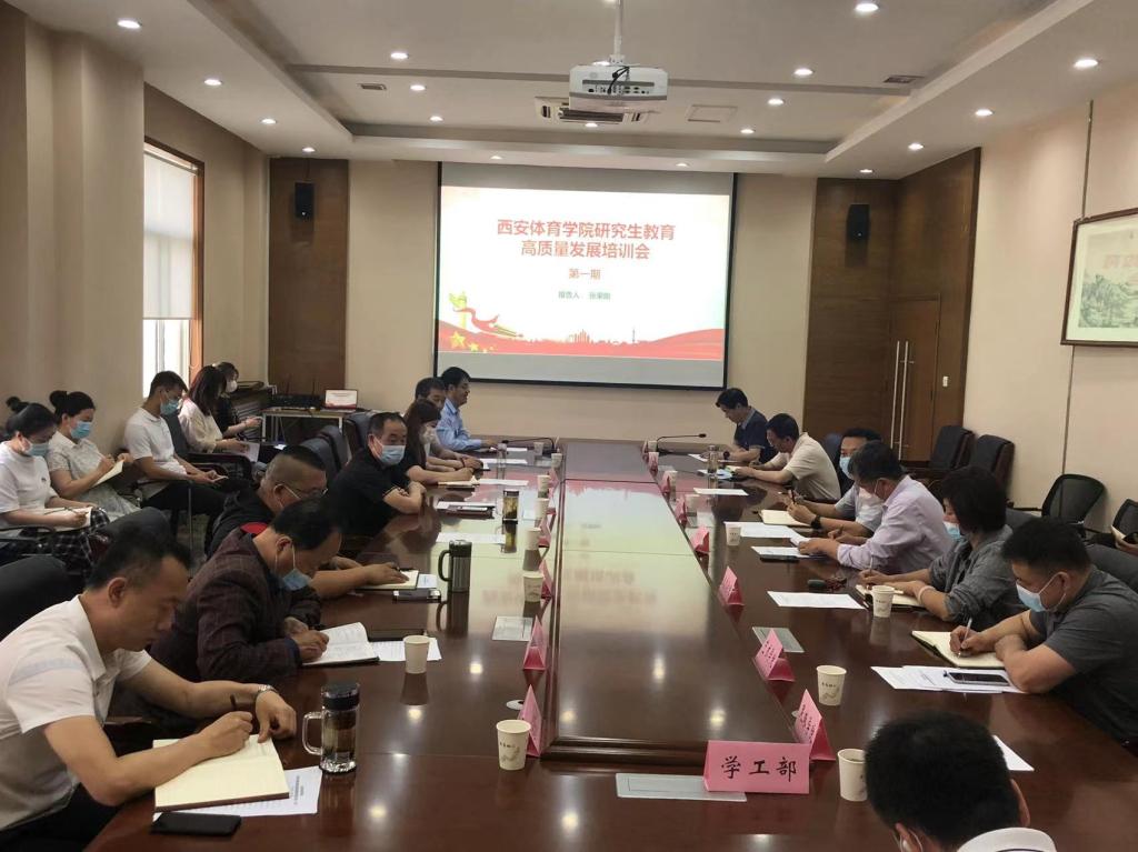 根据学校《“十四五”事业发展规划及实施“一院一策”》要求,为促使我校研究生教育校院两级管理有序实施,5月19日,在我校2号行政楼6楼1号会议室召开西安体育学院研究生教育高质量发展培训会议。本次会议邀请西北政法大学党委委员、副校长张荣刚就“研究生教育校院两级管理”及“学位点建设”做培训报告并展开交流座谈。西安体育学院副校长刘新民,研究生部主任刘耀荣,相关职能部门负责人、各二级学院负责人以及研究生部工作人员等参加。会议由西安体育学院副校长刘新民主持。