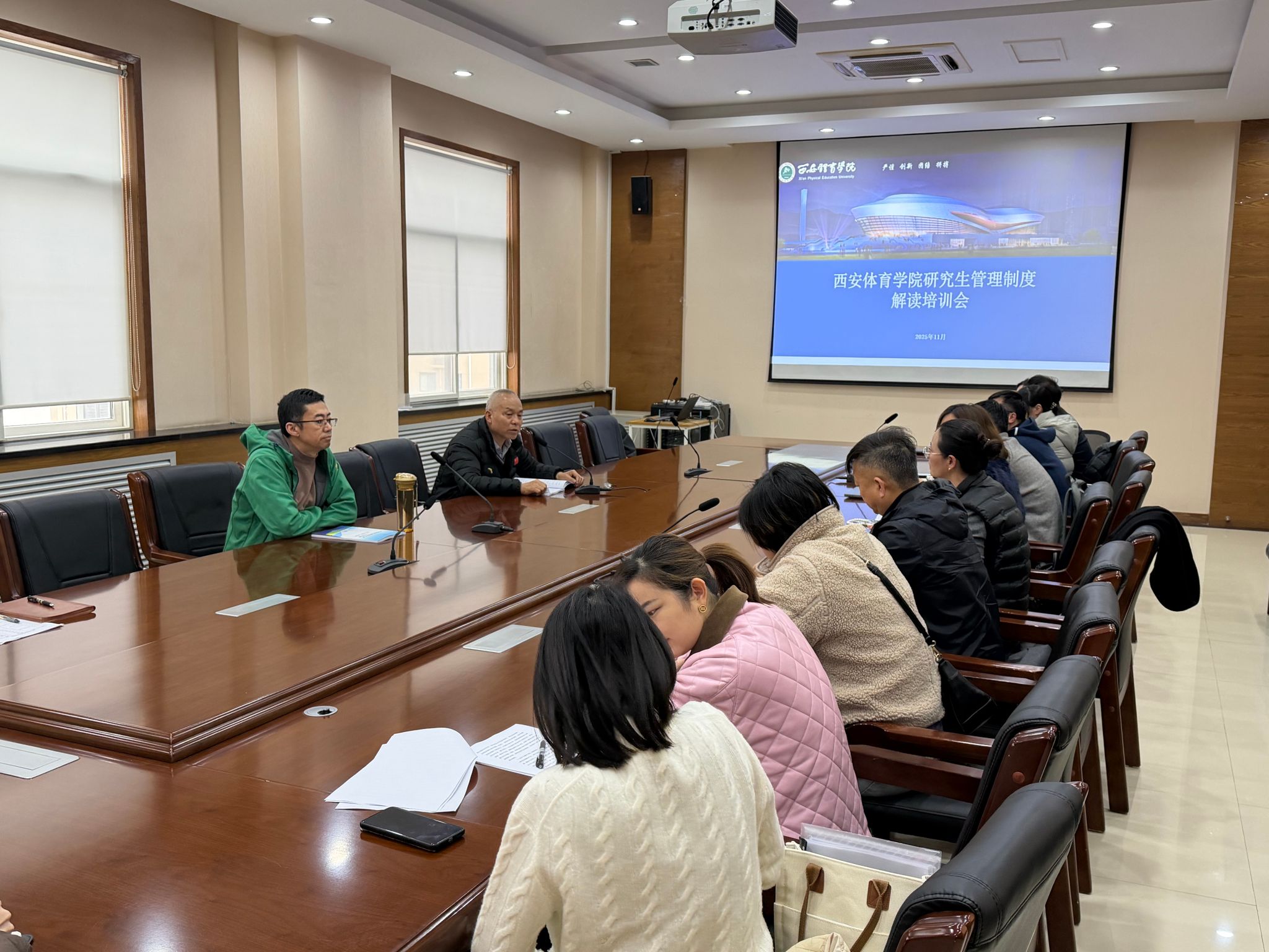 会上,研究生部副主任方程就《西安体育学院研究生硕士学位授予工作实施细则》、《西安体育学院硕士研究生培养工作规定》、《西安体育学院硕士研究生师生互选》以及研究生学位论文工作的系列文件进行了全面、系统的解读,从制度修订的背景、主要变化、执行要点以及注意事项等方面作了深入说明,并结合实际案例对制度执行中的重点、难点问题进行了细致分析,确保与会人员准确把握制度精神、熟练掌握操作流程。