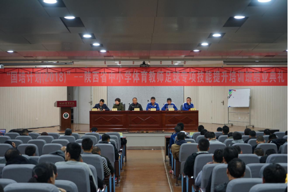 11月16日,“国培计划(2018)”——陕西省中小学体育教师足球专项技能提升培训班在西安体育学院教学楼一楼报告厅举行结业典礼。足球教研室主任席海龙,副主任马俊,足球学院办公室主任岳志铁,足球学院交流中心主任张芬以及足球学院教师出席了此次结业典礼。