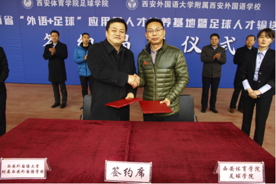 为进一步推动校园足球事业发展,创新人才培养模式,西安体育学院足球学院与西安外国语大学附属西安外国语学校合作共建“陕西省‘外语+足球’应用型人才培养基地”暨“足球人才输送基地”,2018年12月19日上午,签约暨揭牌仪式在西安外国语学校举行。