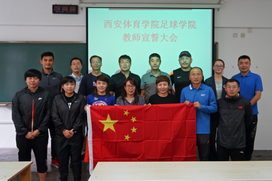 9月12日下午,足球学院在教学楼108教室举行西安体育学院教师宣誓大会。足球学院党总支书记姜梅,足球学院副院长席海龙,足球教研室副主任马俊以及全体足球教研室教师参加了会议,会议由姜梅主持。