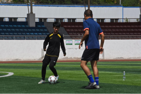 疫情缓和期间,足球学院老师选择与学生们共同拼搏,挥汗于足球场上,为足院学子们送来了口罩,并淳淳叮嘱学生们安全防控的重要性以及保持学习的重要性。