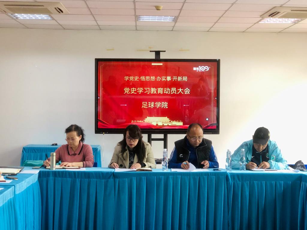 接着,根据校党委在全校范围内开展党史学习教育的要求,院党政办副主任白玉洁宣读了《中共足球学院党总支关于开展党史学习教育的实施方案》。