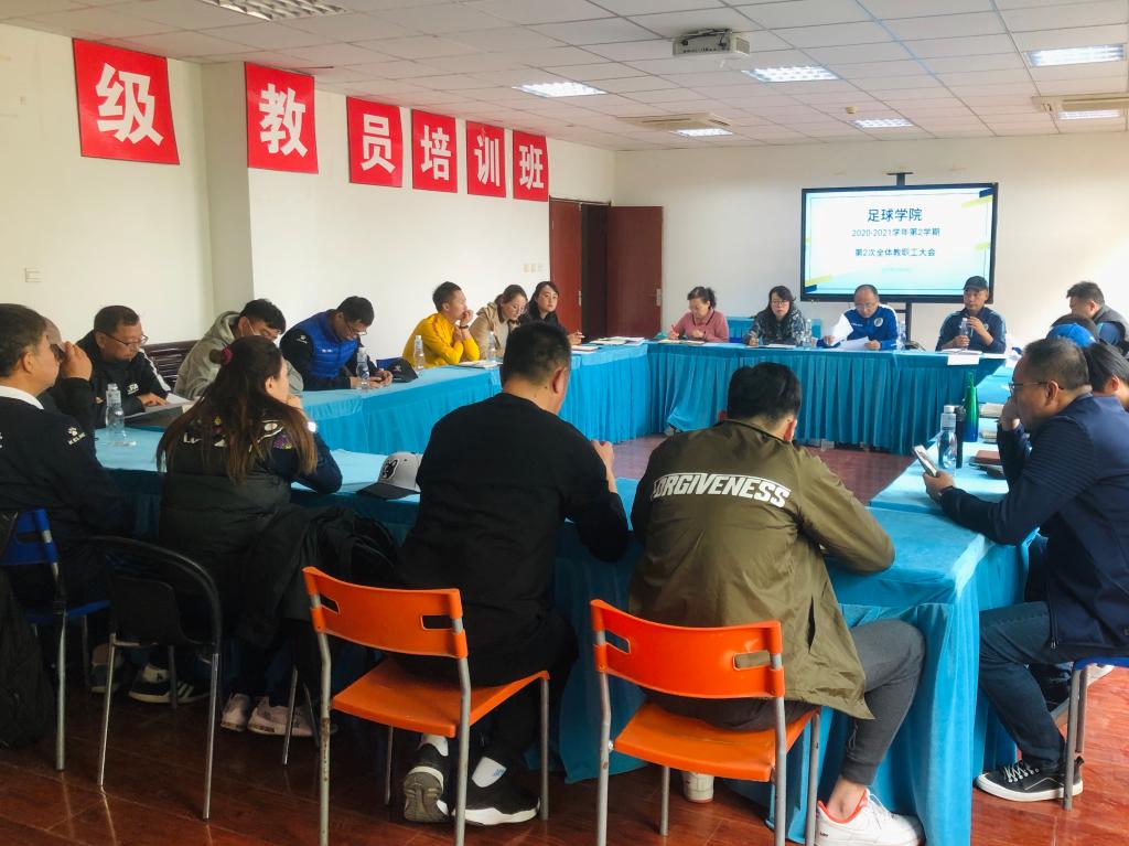 3月30日中午,足球学院召开2020-2021学年第二学期第二次全体教职工大会,院长席海龙主持本次会议。