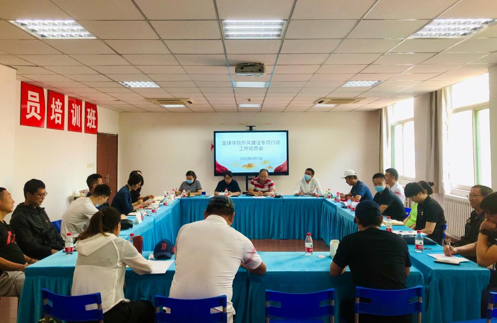 为深入贯彻落实干部作风建设,9月7日下午,足球学院在二号行政楼4楼会议室召开了作风建设专项行动工作动员会,足球学院全体教职工参加,会议由党总支书记姜梅主持。