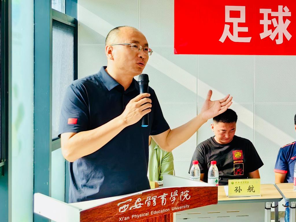 院长席海龙借用西安交通大学校长王树国在西安交大2023级本科生开学典礼上的讲话中提到的大学生活要完成“夯实知识基础、提升创新能力、培养坚韧不拔的毅力”三项任务,同我院人才培养目标相结合进行解读,鼓励新生坚持足球梦想,把家国情怀融入到不懈奋斗之中。
