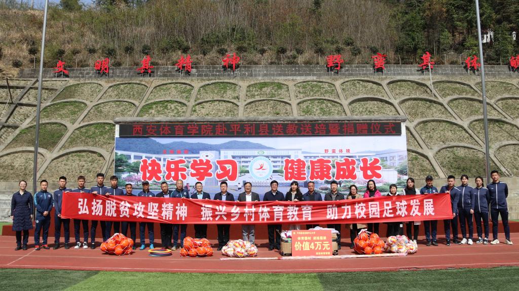 本网讯 为深入贯彻落实习近平总书记来陕考察重要讲话精神,西安体育学院以“突出体育作为、助力乡村振兴”为己任,足球学院自去年与安康市平利县签订“体育结对帮扶”合作协议以来,通过足球公开课讲授、全民健身展示、体育用品捐赠、教学实践基地建设、乡村振兴主题党日等系列活动,以我校特色教学为依托,对推动当地体育教育和乡村振兴融合发展搭建了新平台,探索了新路径。