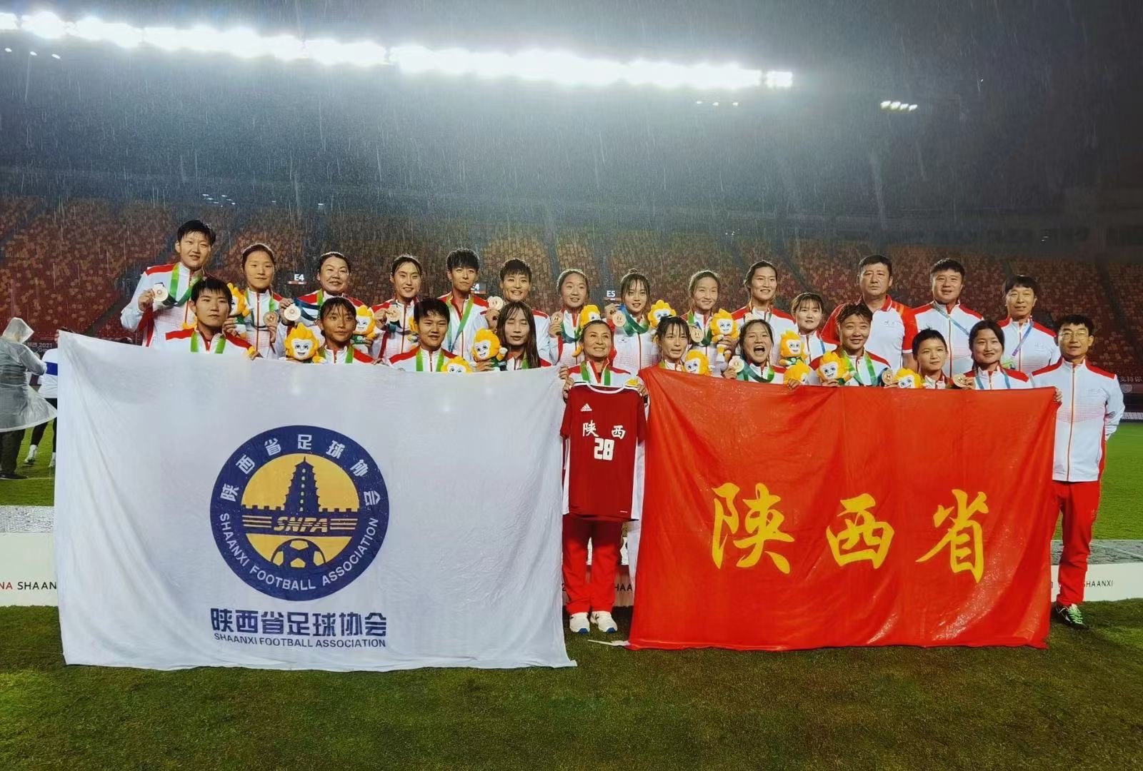 四年一度的国内最高水平综合性体育盛会——中华人民共和国第十四届运动会2021年9月15日在西安拉开帷幕。在本届全运会上我院共有5名教师作为教练、裁判员及运动员参赛,共有18名学生作为足球项目运动员及助理教练参赛,共有17名师生参加志愿者及竞赛委员会工作。足球学院师生经过顽强拼搏,出色表现,取得了1金、3铜、一个第六名、一个第七名的好成绩,为西安体育学院争光添彩。